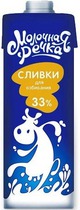 Сливки ультрапастеризованные 33% для взб. 1 кг Молочная речк