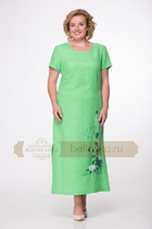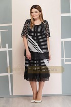Платье полупрелигающего силуэта, без рукава с округлой горловиной и длиной миди. В комплекте идет брошь. длина спинки 107см