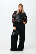 Костюм Элль стиль 2416 черный+принт цветы/черный