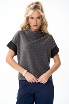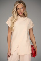 Туника DuSans 1459 черный бархатный орнамент на сетке молочного цвета