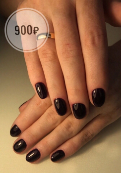 Однотонное покрытие ногтей гель-лаком (в стоимость входит маникюр и выравнивание ногтевой пластины) - 900