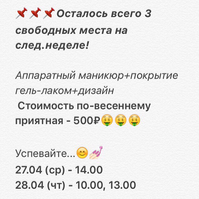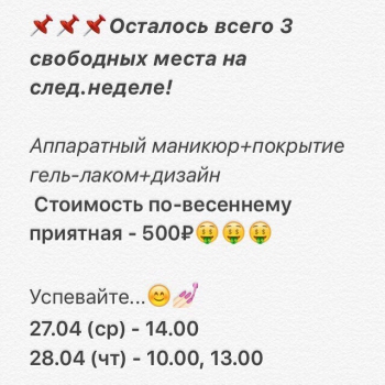 Девочки, расписание на май опубликую уже завтра, следите за темой) Ну а пока напоминаю, что с 29.04-05.05 - не работаю!!! В апреле есть еще 3 свободных места для записи,записывайтесь!))
