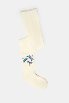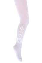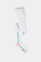 Хлопковые подростковые колготки с ластовицей, широким поясом и плоским швом, на голени нежный цветочный узор.
