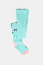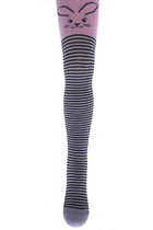 Хлопковые подростковые колготки с широким поясом, плоским швом и задней вставкой, снизу имитация полосатых ботфортов, сверху узор "зайка".