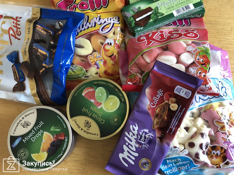 Германия, сладости. Перепробовав все что брала -отписываюсь) Пряники были съедены первыми, мягкие, ароматные, в шоколадной глазури - вкуснотища! моя любовь! очень жаль что пекут их только к рождеству... вафельки knoppers в индивидуальной упаковке, удобно брать с собой,с нежным кремом, молотым фундуком, очень вкусно! Трюфели де шампань достались мужу. В шоколадках с драконом взравающаяся карамель, шоколад немного хуже чем в привычном киндере. Мармелад весь мягкий, из всего разнообразия хочется выделить персиковые кольца- с кислинкой. И которые в форме зайцев фирмы Katjes, сильно похожи на фруттелу, и консистенцией и вкусом. Киндеры порадовали внешним видом, пришли целые, попробовать не удалось))) Глаза - что то среднее между суфле и мармеладом внутри кислая начинка. Чупачупс страсти мордасти- со вкусом колы. Ну и для унитаза красителя не пожалели. В общем вкуснота да и только)))