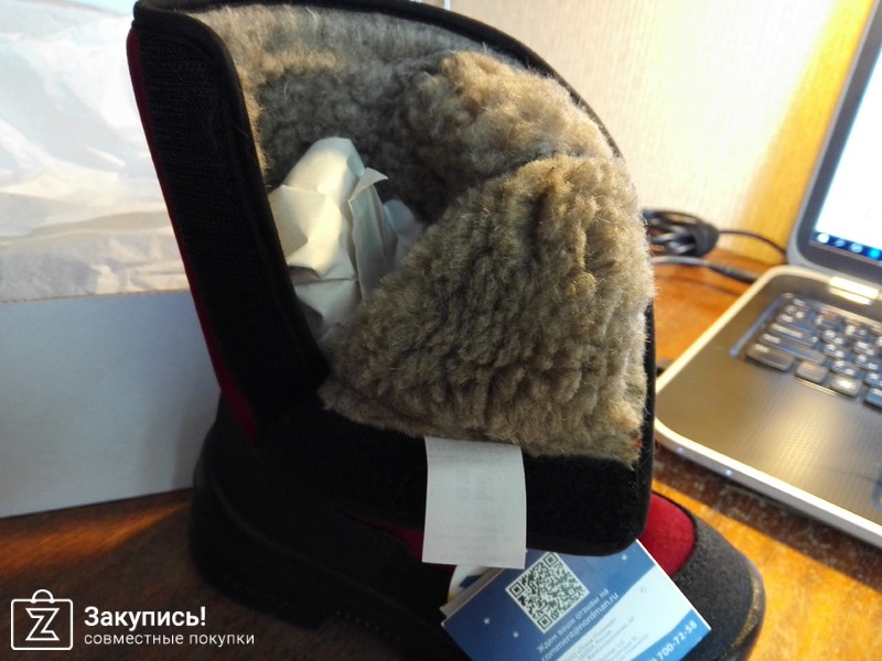 Минус: небольшая раскрываемость сапожек. Нам трудно одевать, тк у ребенка оказался большой взъем. Натягивать с усилием приходится. и почему-то левый особенно. При хотьбе все прекрасно, аккуратно на ножке сидят, малышу понравились. Только жаловался, когда одевали, что боба. Надеемся, что разносим.