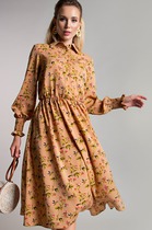 Юбка немного ярче платья -футляра, что красиво оттеняет персиковый цвет