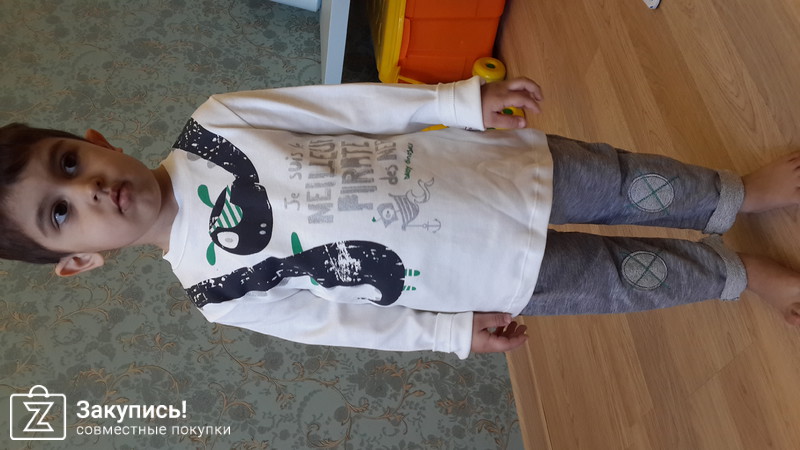 Очень классная закупка! За такие деньги -вещи отличные))) Заказываю уже не в первый раз, и приду еще) В этот раз выкупился костюмчик, мне и сыну оооочень понравился!!! Сыну 3,5, рост около 100 см, костюм размером 4-5, на ярлыке 104-110, маломерит, нам совсем чуть-чуть велик, уже активно модничает в садике))) Из недочетов только то что с размерами не всегда можно угадать... тут только методом проб и ошибок) Ольге огромное спасибо за такую трудоемкую закупку!!!