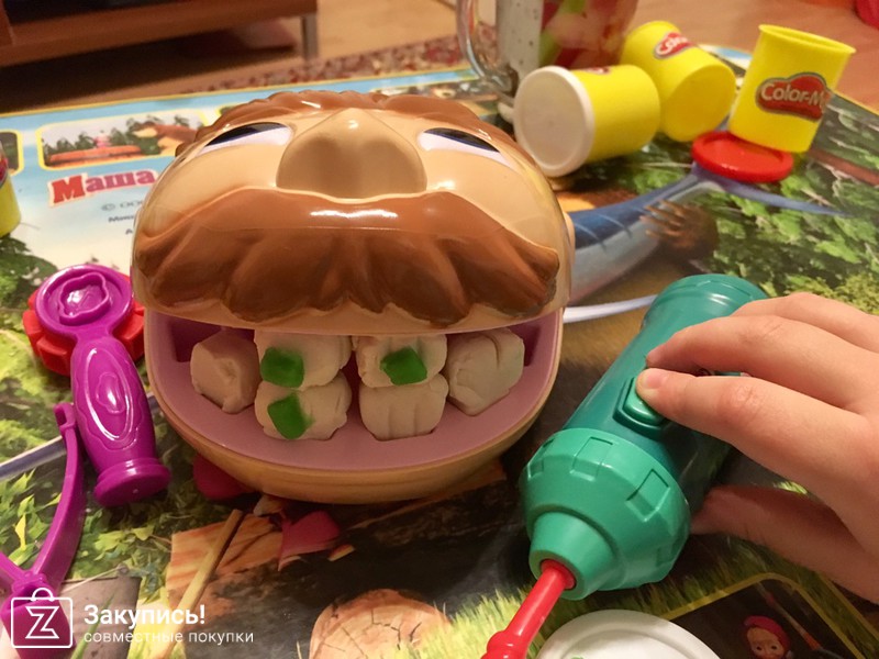 Набор для лепки Стоматолог (Мистер Зубастик) - отличный набор для развития мелкой моторики и фантазии ребенка. Замечательный аналог, за приемлемую стоимость. Немного отличается по размеру, мне показалось, что сама голова поменьше, к остальному нет вопросов. Никакого едкого химического запаха.