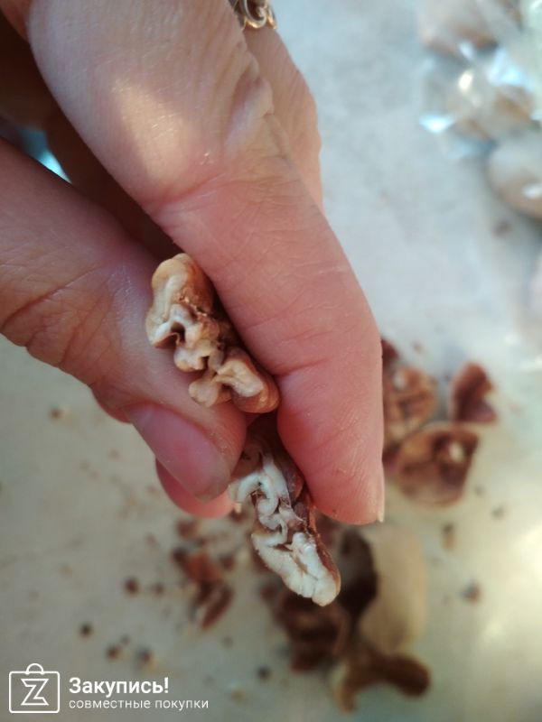 А вот пекан огорчил, все орехи в расколотой скорлупе. Когда достаешь орех, он на вид вроде ничего, а внутри, если его разломить, сердцевина коричневая и вкус сладковато-противный. Явно испорчены, только на выброс. Жаль денег.