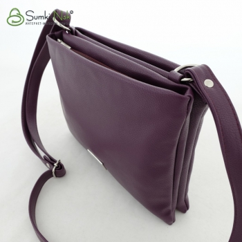 Небольшая практичная сумка на длинном ремне. Сверху 2 отделения на молниях, между ними карман-перегородка. Внутри карман на молнии. Сзади карман на молнии. Длина ремня 125 см.