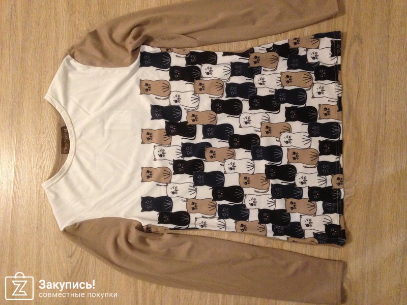 Получила свой Свитшот PUSSYCATS. Заказывала 42 размер. Я просто влюбилась в этих очаровательных кошек))) Свитшот соответствует фотографии на сайте на 100 процентов. Сторона с кошками из \"стеклянного\" (как я его называю) материала, рукава и спинка-трикотаж, обе стороны очень приятны к телу. Симпатичный и привлекающий к себе внимание свитшот, полностью оправдал мои ожидания! Цена приемлемая и вещь хорошая!
