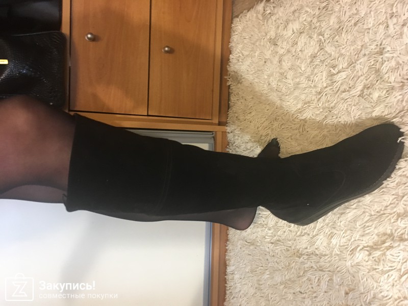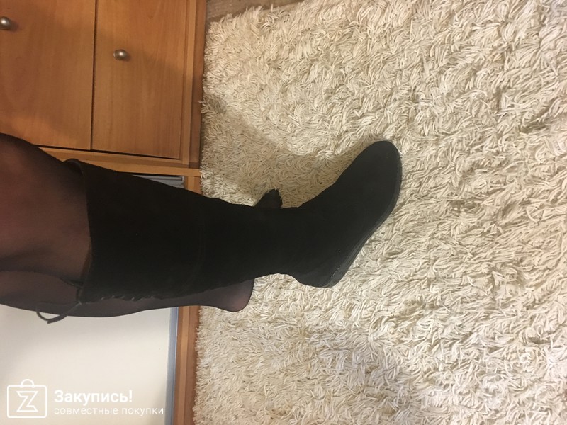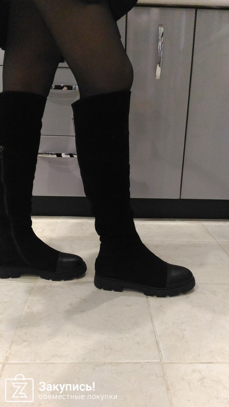 Брала сапоги ещё в ноябре) вот и до отзыва дошли руки))) Сапоги женские из натуральной замши черного цвета со шнуровкой сверху, на не высокой танкетке и утолщенной подошве, М-102- замечательные сапоги, заказ был в зимнем варианте. Покупала маме. Она очень довольна и ценой и качеством. Единственное они на НЕ худую ногу. Меняла на свою у меня в голяшке болтаются, даже шнуровка не помогла. Организатору большое спасибо за такую закупку.