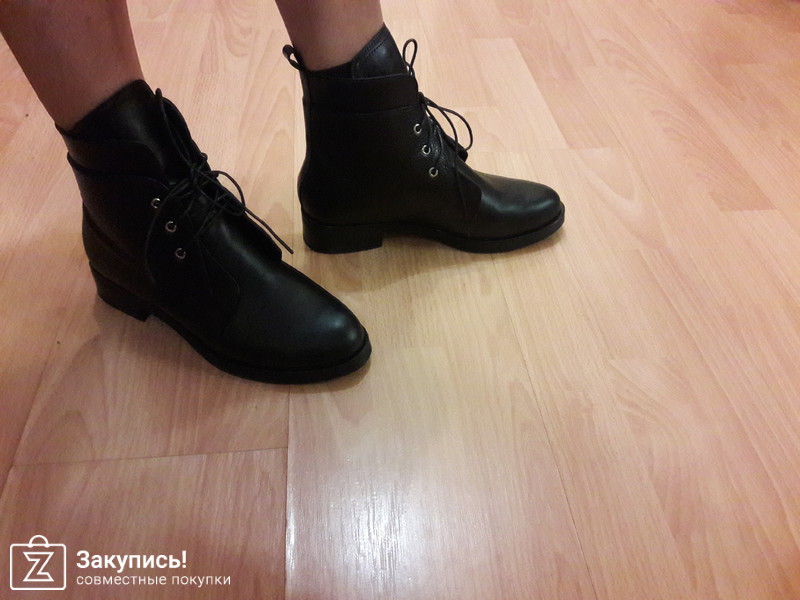 Ботинки очень качественно и аккуратно сделаны. Полностью соответствуют описанию и фото на сайте. Изюминку классической черной паре придает сочетание 2-х типов кожи - гладкой черной и более фактурной кожи \"зерно\". Кожа отличной выделки. Обувка легкая. Подошва мягкая. Шнурки отличного качества (подобные у меня в осенней обувке Эко***ника - не растягиваются и не протираются).