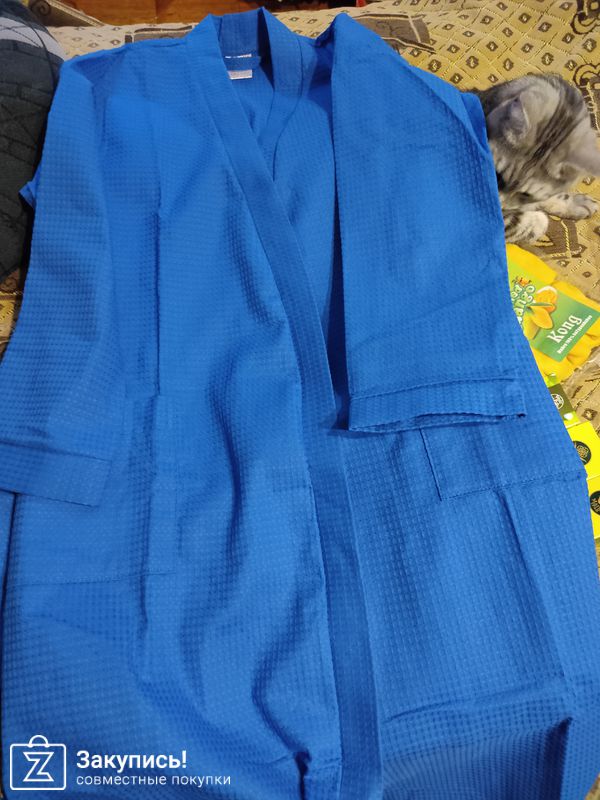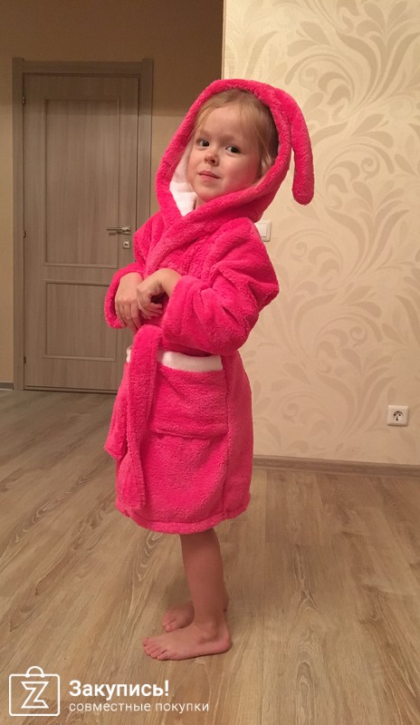 Я заказывала укороченный халат из велсофта с капюшоном. Довольна им очень. Уютный, теплый. Зимой и в межесонье - то, что надо! Летом в нем жарко.