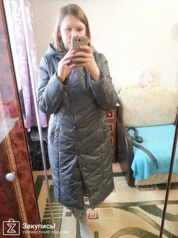Заказала куртку женскую Макси. Вовремя передумала чернику заказать на т. Серый. Размер 48. Хотя мой размер переходный 46/48. Искала пальто именно чтоб с юбкой носить. Фасон немного меня растроил, по фото думало что расклешенное книзу. По факту порямое, не приталеное, за счет этого скрывает и талию. Очень легкое, теплое, в целом довольна, носить буду. На клепках мне очень понравилось, я нижние клепки не застегиваю и за счет этого становится слегка расклешонное