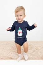 Боди из натурального хлопка с длинными рукавами. Украшено новогодними принтами. Застёгивается на кнопки на плече и в паху.