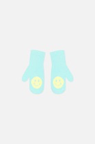 Варежки для девочки, вязаные из полушерстяной пряжи. Двойные, на внешней стороне рисунок. Эластичные манжеты.