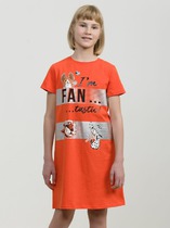 Платье для девочки из эластичного трикотажа в рубчик. Спереди нашивка.— Описание у На сайте поставщика