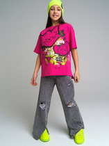 Джинсовая куртка oversize. Средняя длина. Свободная посадка. Застежка на кнопки. Функциональные карманы.