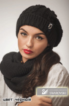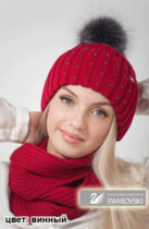 шапка “Хаски” с помпоном из натурального меха и стразами Swarovski