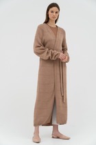 Кардиган удлиненный с поясом, бежевый меланж