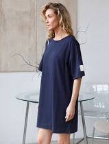 Платье свободное с V-вырезом из 100% хлопка с поясом и разрезом
