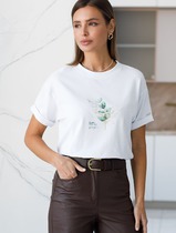 Футболка оверсайз с принтом стразами из премиального хлопка с эластаном