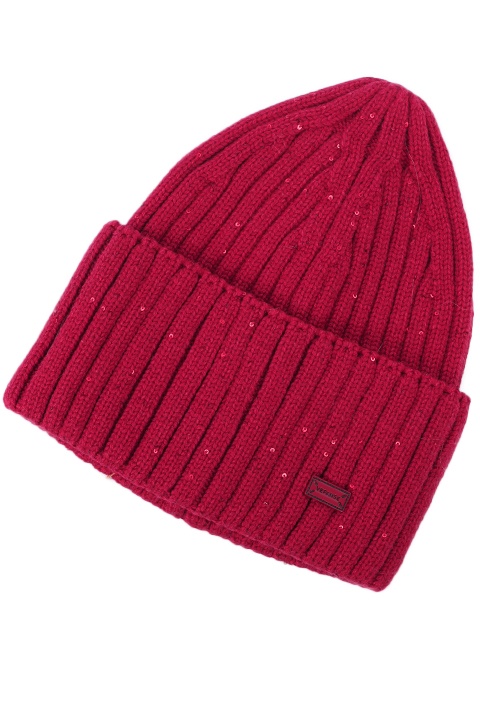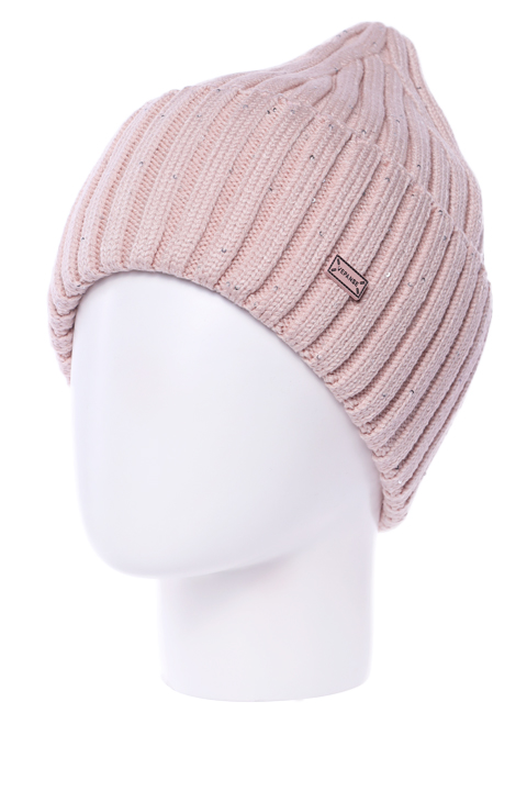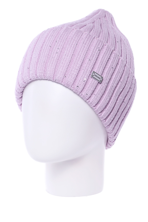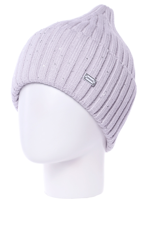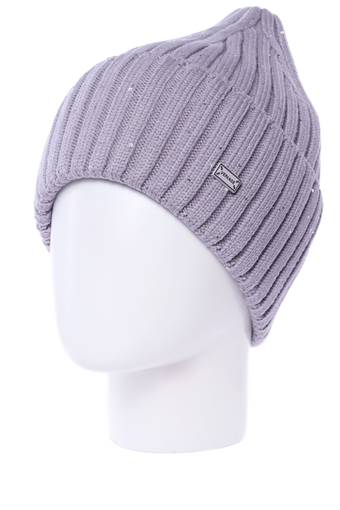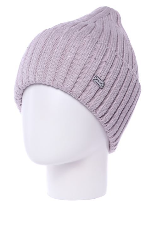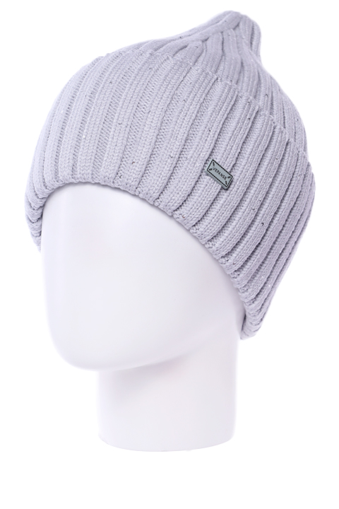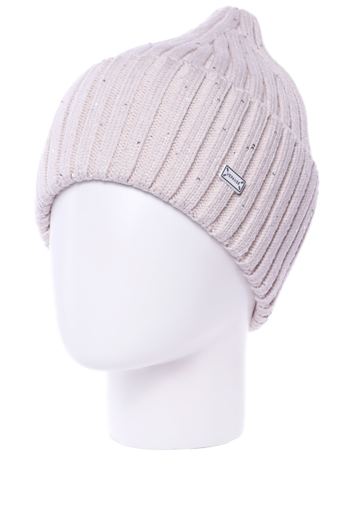 Шапка одинарная с отворотом, выполнена из эластичной пряжи с пайетками.