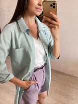 Х1031 БАТНИК ФИСТАШКОВОГО ЦВЕТА В КЛЕТКУ