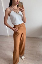 S1767 БРЮКИ ИЗ НАТУРАЛЬНОГО МАТЕРИАЛА НА РЕЗИНКЕ БЕЖЕВОГО ЦВЕТА