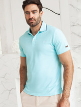 Vilatte Футболка-поло из фактурного трикотажа U49.012 лазурно-голубой с полосой