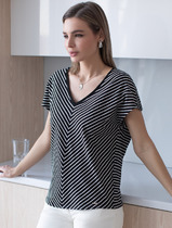 Vilatte Футболка с цельнокроеным рукавом D49.069 белый-черный полоса