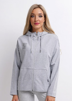 Объемный джемпер из футера с капюшоном. Спущенная линия плеча. Рукав до локтя. На детали переда карман-кенгуру.— Описание у На сайте поставщика