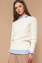 Vilatte Свитер фактурной вязки из хлопка с акрилом D34.210 натуральный белый