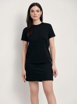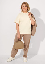 Boyfriend крой, укрепление по горловине спинки, круглый вырез. Горловина рибана. Отстрочка по горловине переда