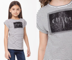 ДИСКОНТ VILATTE F49.330 Футболка для девочки белый-черный в полоску