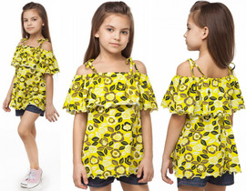 ДИСКОНТ VILATTE F49.332 Топ для девочки принт Цветочный