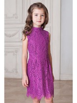 Платье из кружева на хлопковой подкладке. Воротник стойка. На юбке у талии защипы. Сзади небольшая застежка на кнопки.