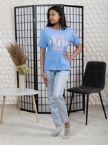 Женская пижама ЖП 024 (T) (Голубой_полоса с принтом)