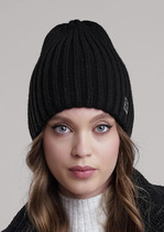 Шапка женская двойная, декорированная круглой маталлической нашивкой. Подходит в осенне-зимний период.— Описание у На сайте поставщика