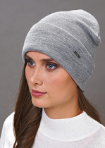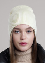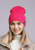 Шапка связаная ластиком, декорирована стильной нашивкой. Подойдёт для осенне- весеннего периода.— Описание у На сайте поставщика