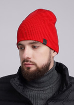 Базовая двойная шапка без отворота, выполнена ластичным переплетением. Декорирована нашивкой логотип.— Описание у На сайте поставщика