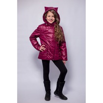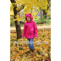 Детская Демисезонная Куртка с ушками на капюшоне Расцветка Малина
