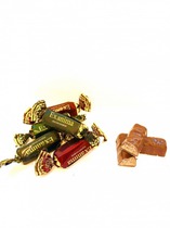 Конфеты в форме слитка в шоколадной глазури со светлой начинкой и вкусом: "Арахисовая паста".