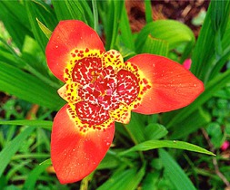 лимонно-желтый, в центре темный крап, махровый, H-95см