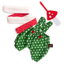 Уютный зимний комплект для кота Басика — красная шапочка из вязаного трикотажа с помпоном, белоснежный меховой жилет и красные варежки.