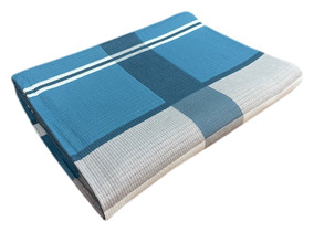 Покрывало п / лен КРУПНАЯ КЛЕТКА С ПОЛОСОЙ - бирюзовый р-р 200х230