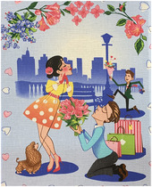 Полотенце вафельное 35010 - 1 ДЕНЬ ЗАЩИТНИКА ОТЕЧЕСТВА - солдат с девушкой р-р 5