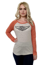Женская футболка-реглан Harley-Davidson – раскрепощенный спорт-стиль с терракото